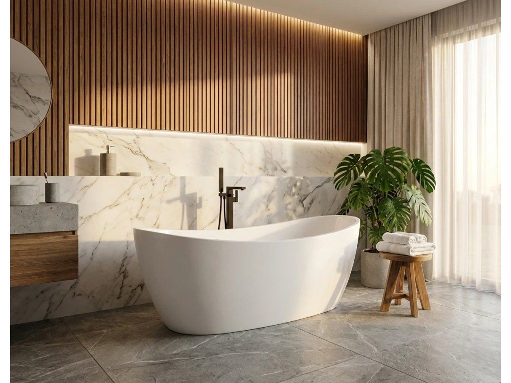 CERANO - Szabadon álló akril kád Nerea - fényes fehér - 170x80 cm