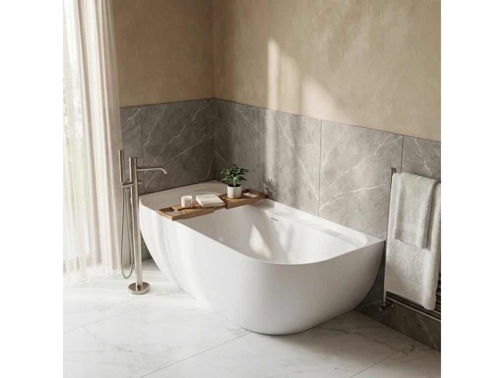 CERANO - Öntött márványból készült szabadon álló kád Valeria, bal oldali - matt fehér - 170x82 cm