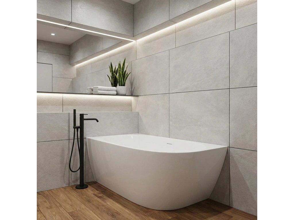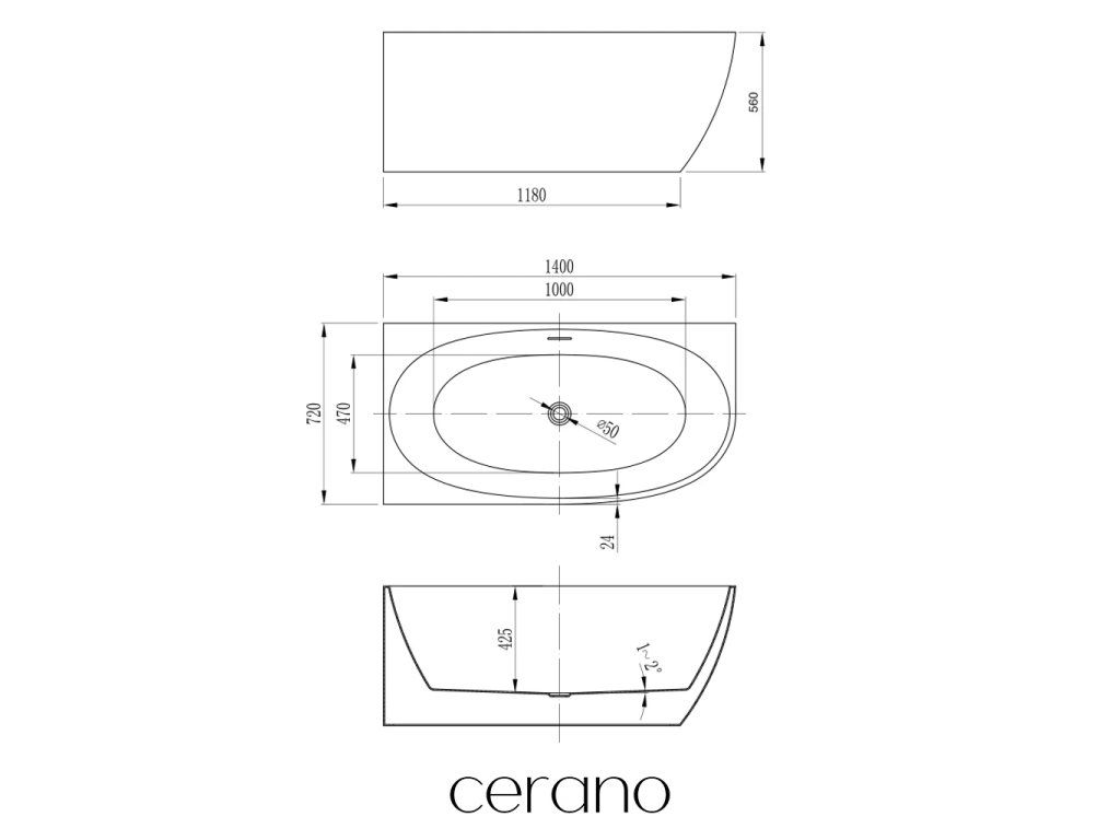 CERANO - Szabadon álló akril kád Livia, bal oldali - fehér fényes felülettel - 140x72 cm
