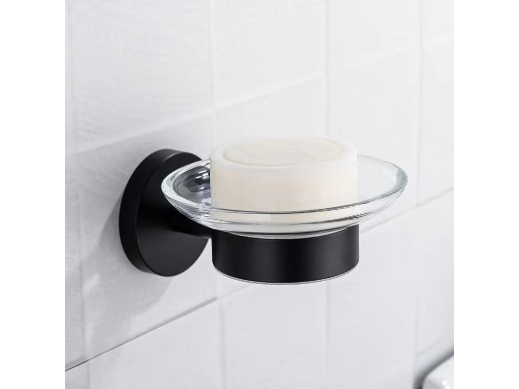 CERANO - Falra szerelhető szappantartó Lineo - matt fekete, átlátszó üveg