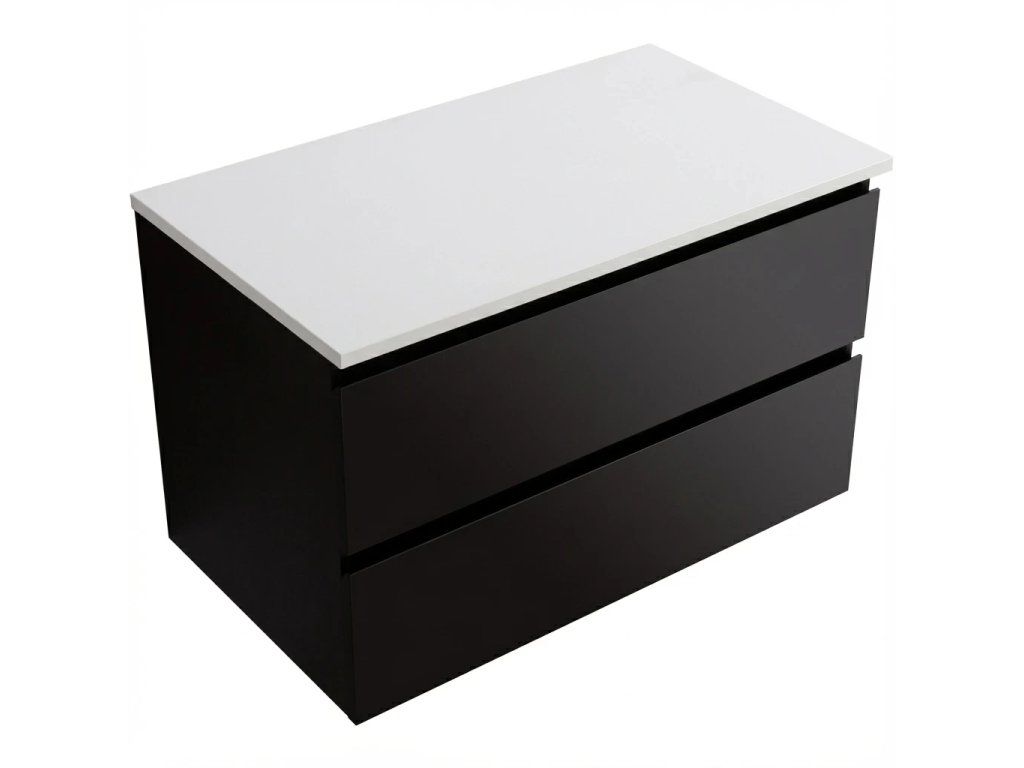 CERANO - Carole fürdőszobaszekrény - matt fekete + Elanys világító márvány mosogatólap - 12 mm - matt fehér - 80x49.2x46 cm