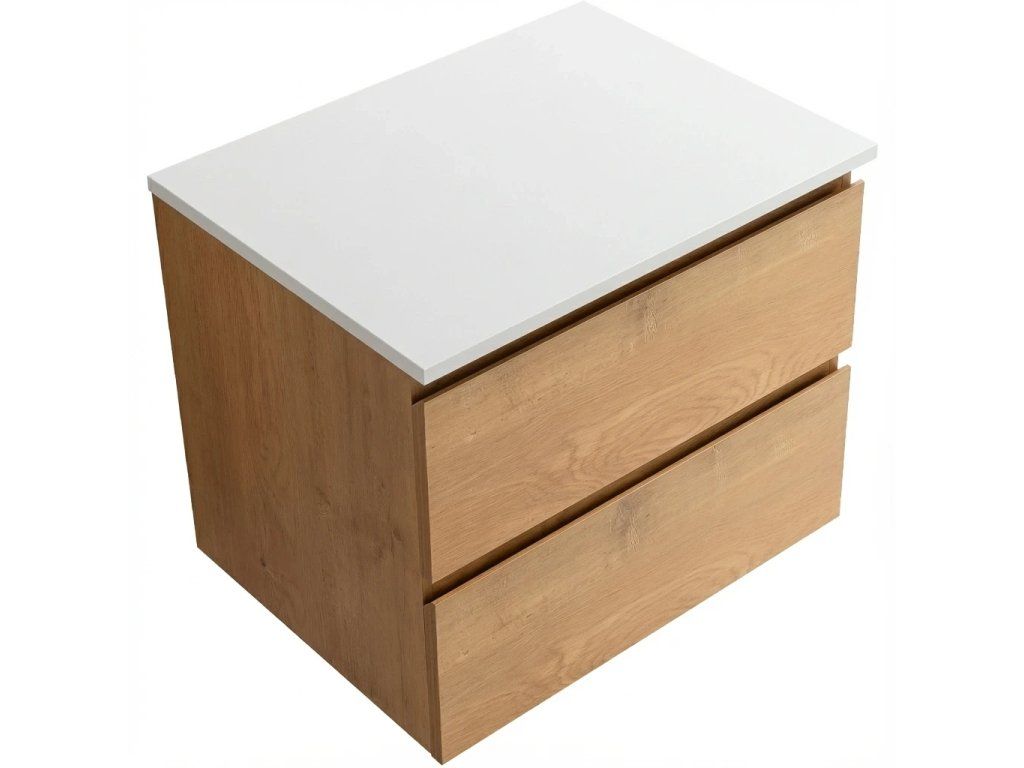 CERANO - Carole fürdőszobaszekrény - mézes tölgy + Elanys világító márvány mosogatólap - 12 mm - matt fehér - 60x49.2x46 cm