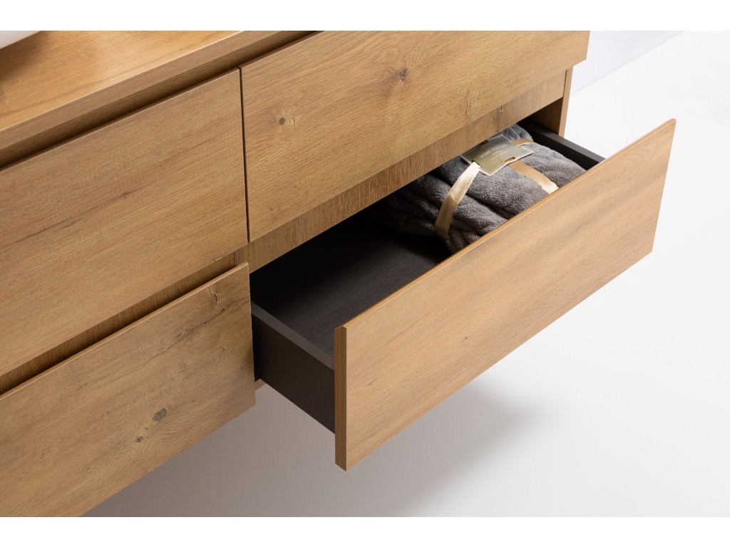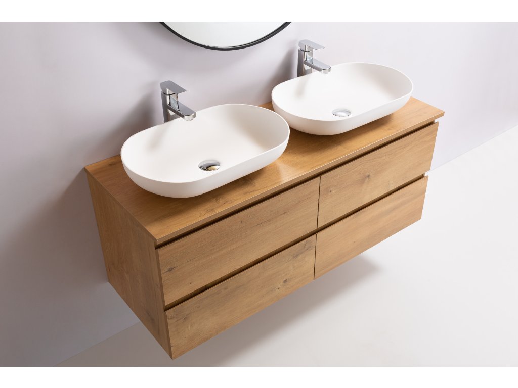 CERANO - Carole fürdőszobaszekrény mosdólappal - 18 mm - mézes tölgy - 141x49.8x46.5 cm