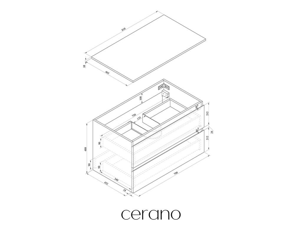 CERANO - Carole fürdőszobaszekrény mosdólappal - 18 mm - mézes tölgy - 81x49.8x46.5 cm