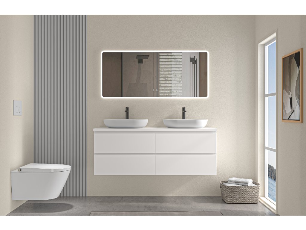 CERANO - Carole fürdőszobaszekrény mosdólappal - 36 mm - matt fehér - 161x51,6x46,5 cm