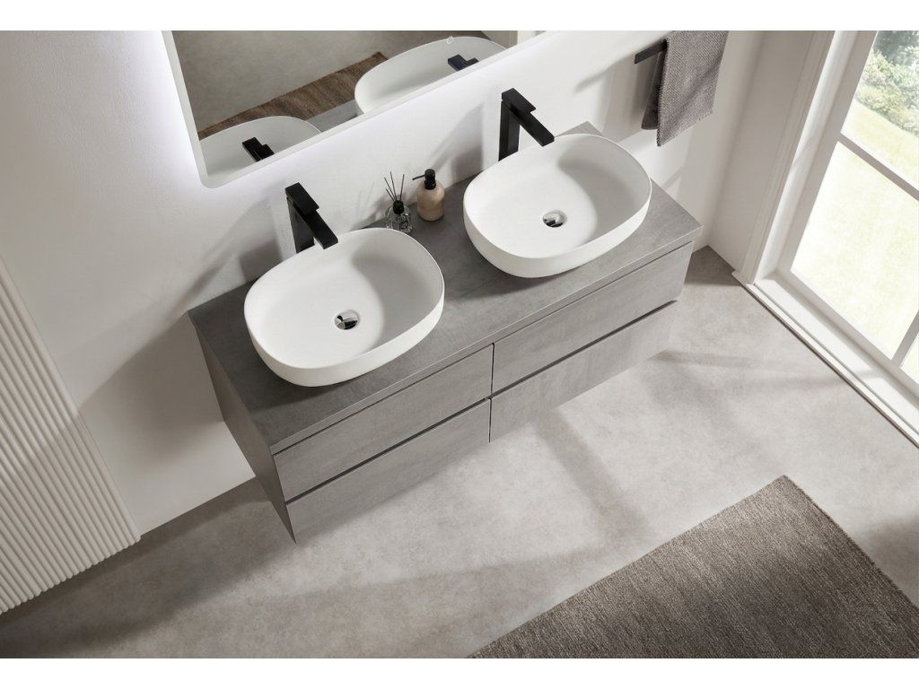 CERANO - Carole fürdőszobaszekrény + Navira Pro mosdópult - 36 mm - betonszürke - 120x51,6x46 cm
