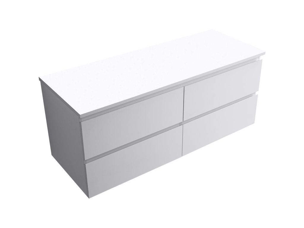 CERANO - Carole fürdőszobaszekrény + Navira Slim mosdópult - 18 mm - matt fehér - 140x49,8x46 cm
