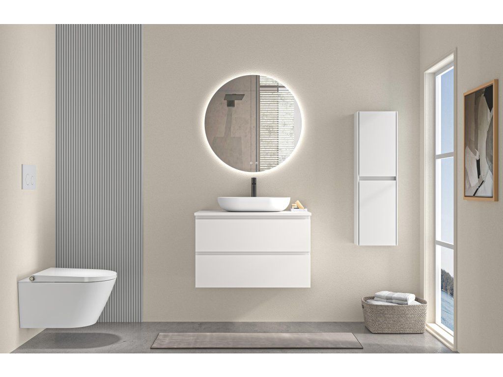 CERANO - Carole fürdőszobaszekrény + Navira Slim mosdópult - 18 mm - matt fehér - 80x49,8x46 cm