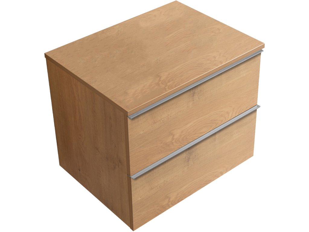 CERANO - Fürdőszobaszekrény mosdó alá fogantyúval/Velora mosdólappal - 18 mm - mézes tölgy, króm fogantyú - 59x53x46 cm