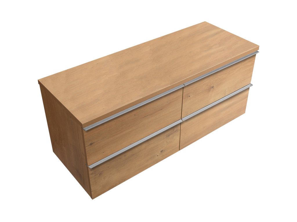 CERANO - Fürdőszobaszekrény mosdó alá fogantyúval/Velora mosdólappal - 36 mm - mézes tölgy, króm fogantyú - 158x53x45,2 cm