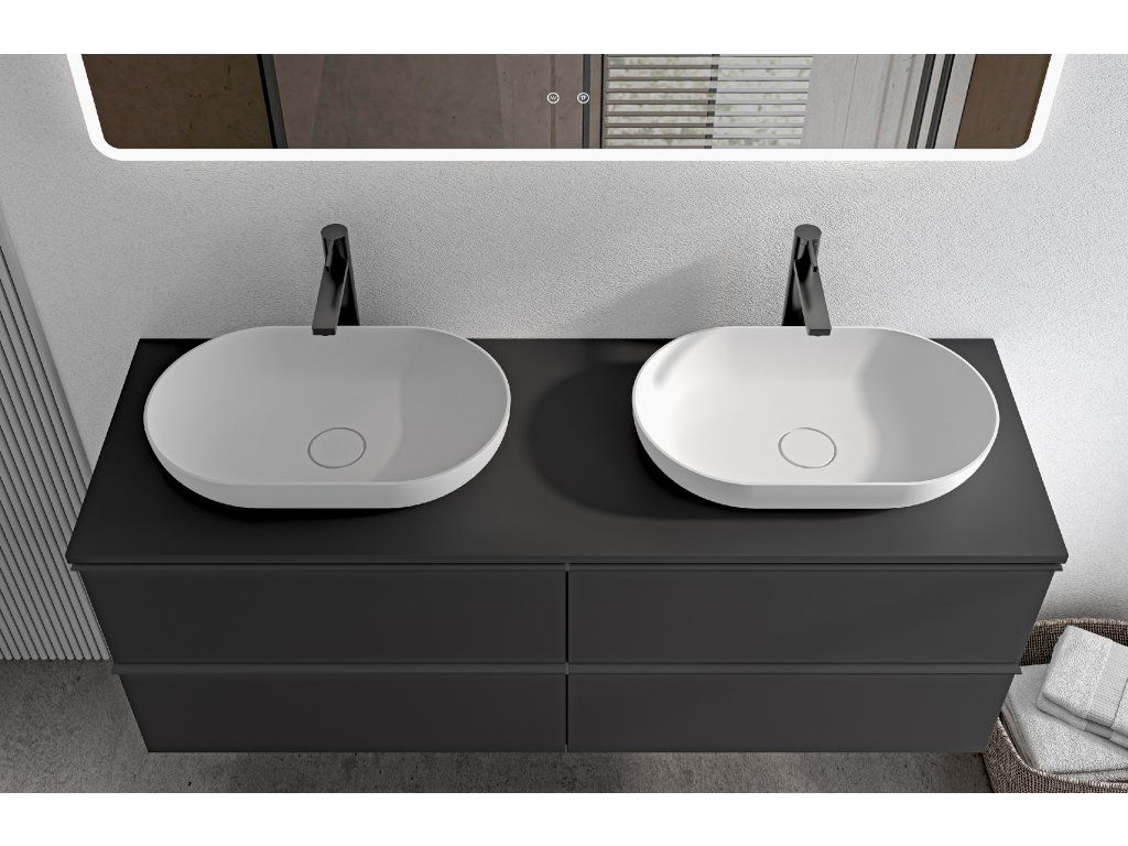 CERANO - Fürdőszobaszekrény mosdó alá Velora fogantyúval/mosdótetővel - 18 mm - matt fekete, fekete fogantyú - 138x53x45,2 cm