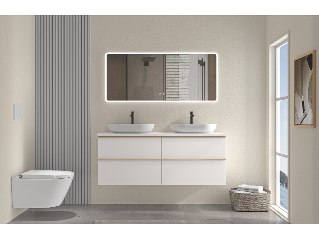 CERANO - Fürdőszobaszekrény mosdó alá Velora fogantyúval/mosdótetővel - 36 mm - matt fehér, arany fogantyú - 138x53x45,2 cm