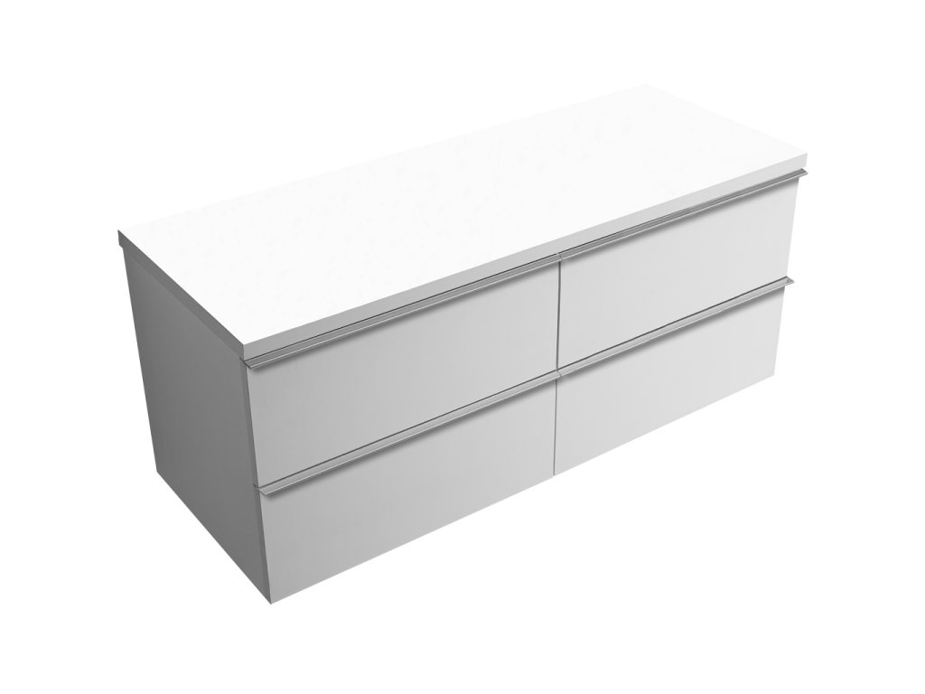CERANO - Fürdőszobaszekrény mosdó alá Velora fogantyúval/mosdótetővel - 36 mm - matt fehér, króm fogantyú - 119x53x45,2 cm