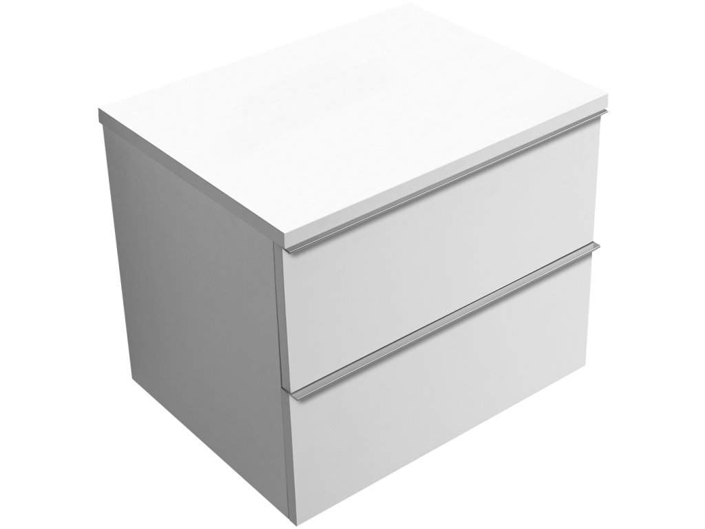 CERANO - Fürdőszobaszekrény mosdó alá Velora fogantyúval/mosdótetővel - 36 mm - matt fehér, króm fogantyú - 59x53x46 cm