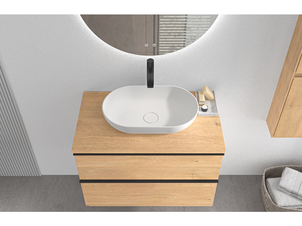 CERANO - Fürdőszobaszekrény mosdó alá Velora fogantyúval/mosdótetővel - 36 mm - mézes tölgy, fekete fogantyú - 79x53x46 cm
