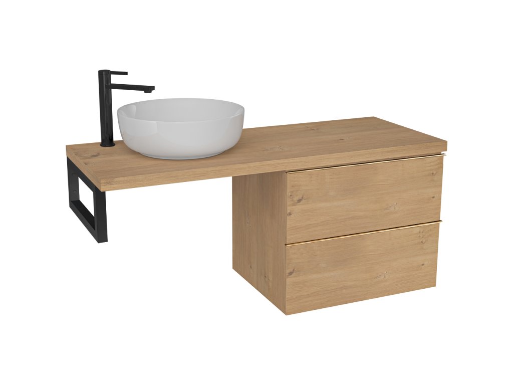 CERANO - Navira Pro mosdólap - 141x46,5x3,6 cm - Velora szekrény 69 cm - mézes tölgy, arany fogantyú - fekete konzol