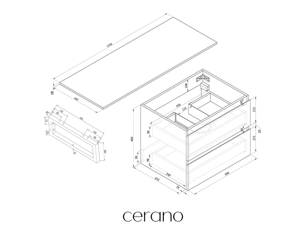 CERANO - Navira Slim mosdólap - 121x46,5x1,8 cm - Carole szekrény 59 cm - matt fehér - fekete konzol