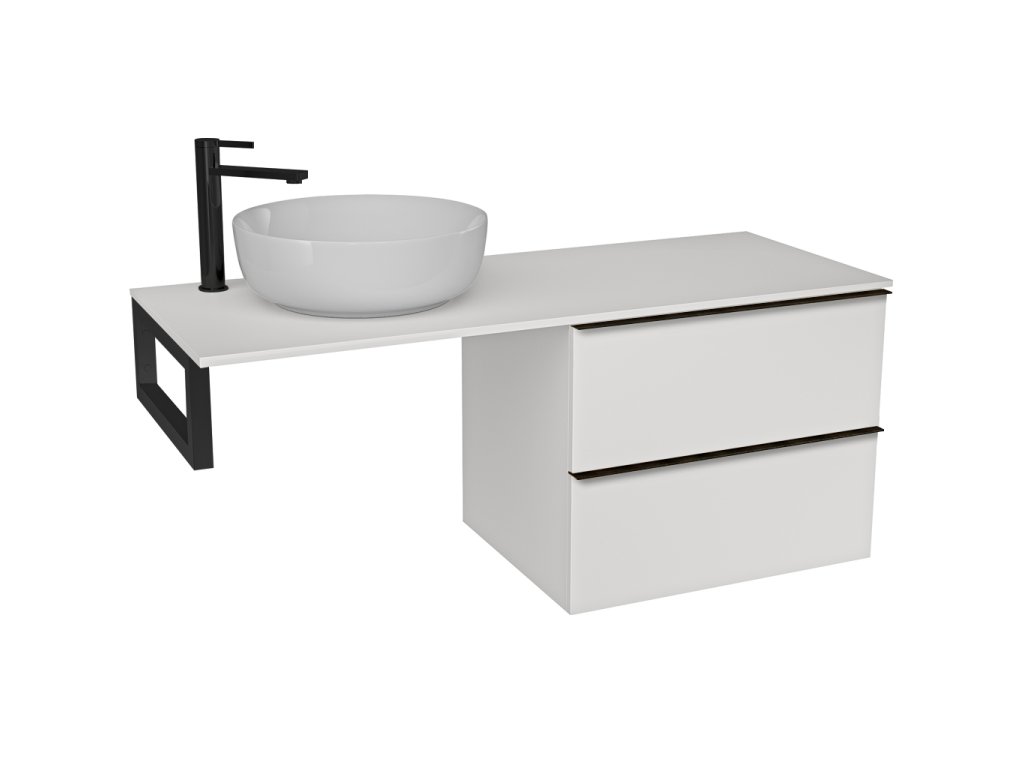 CERANO - Navira Slim mosdópult - 121x46,5x1,8 cm - Velora szekrény 59 cm - matt fehér, fekete fogantyú - fekete konzol