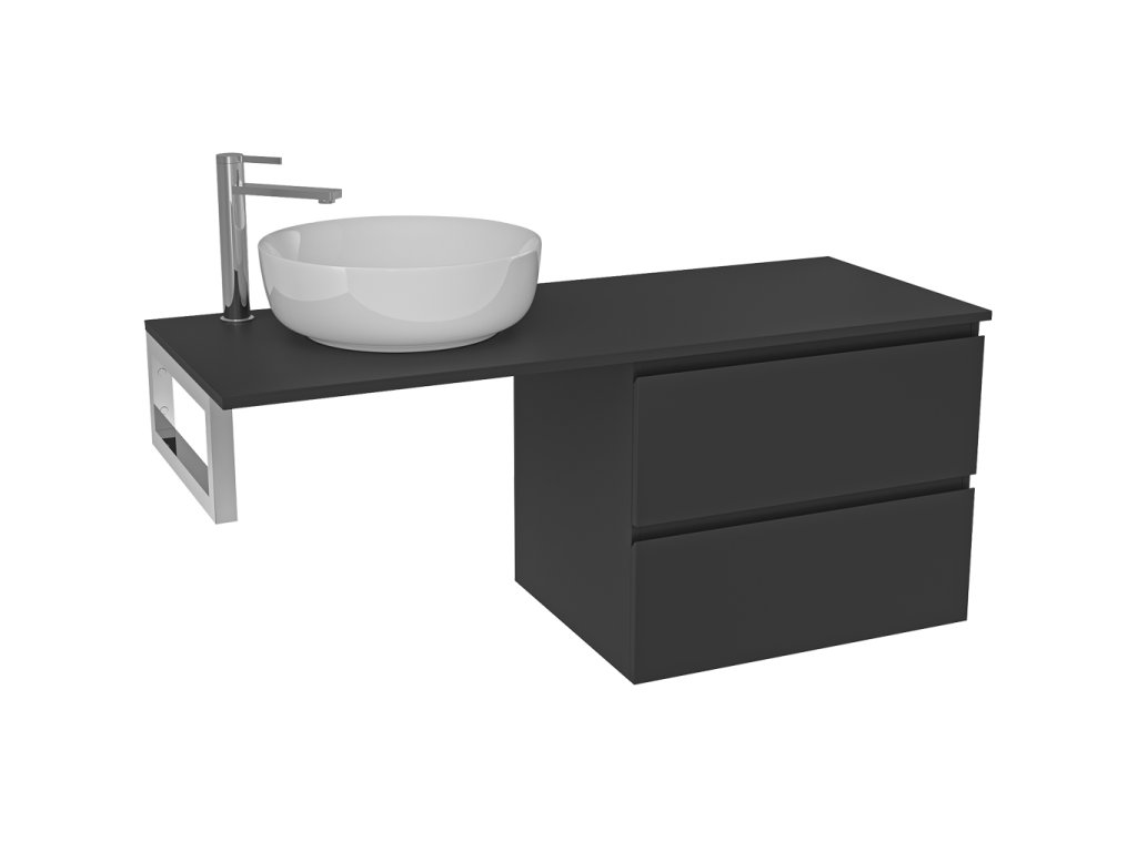 CERANO - Navira Slim mosdópult - 161x46,5x1,8 cm - Carole szekrény 79 cm - matt fekete - króm konzol
