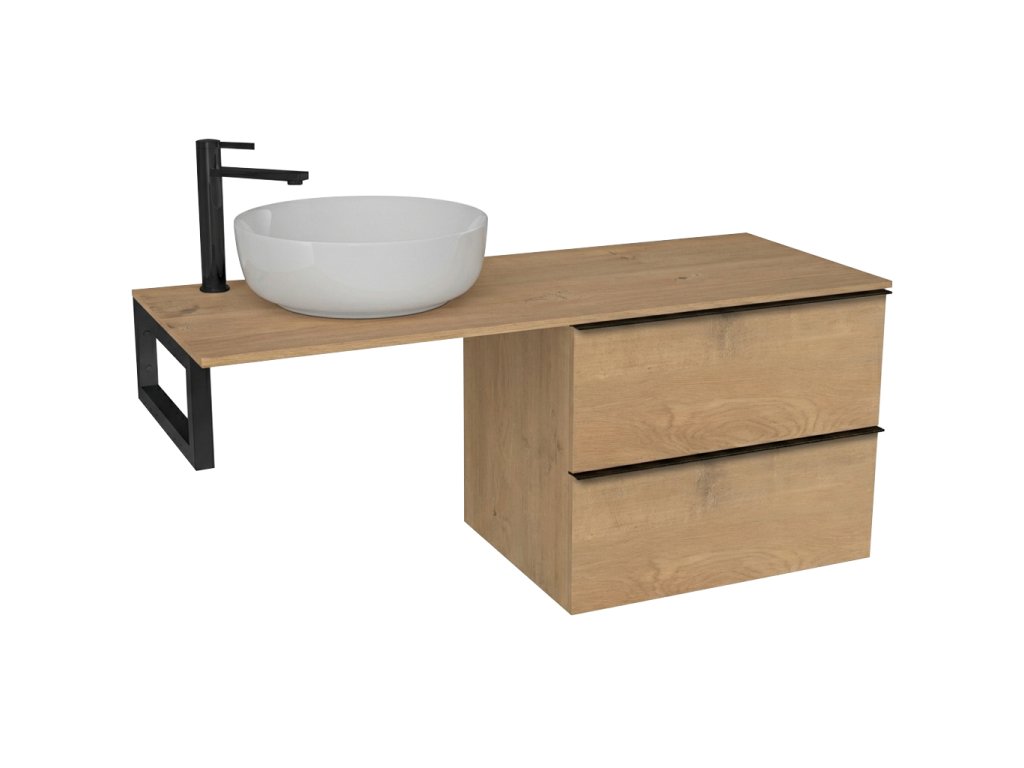 CERANO - Navira Slim mosdópult - 161x46,5x1,8 cm - Velora szekrény 79 cm - mézes tölgy, fekete fogantyú - fekete konzol