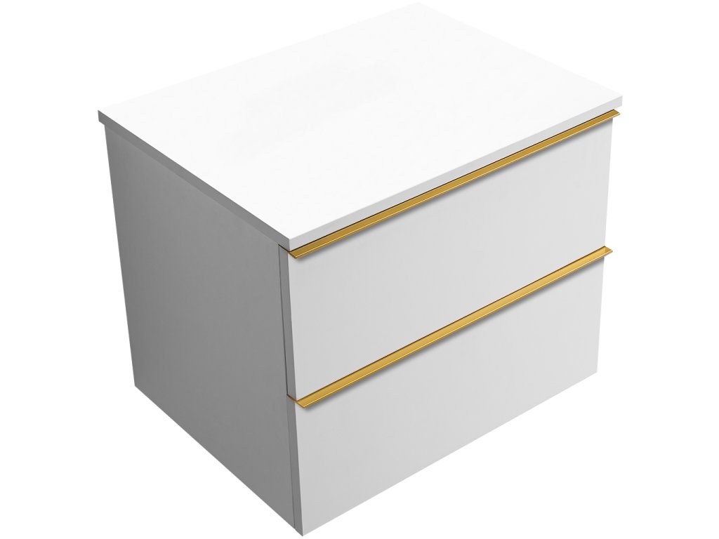 CERANO - Velora fürdőszobai mosdószekrény Elanys öntött márvány fogantyúval/tetővel - 12 mm - matt fehér, arany fogantyú - 59x53x46 cm