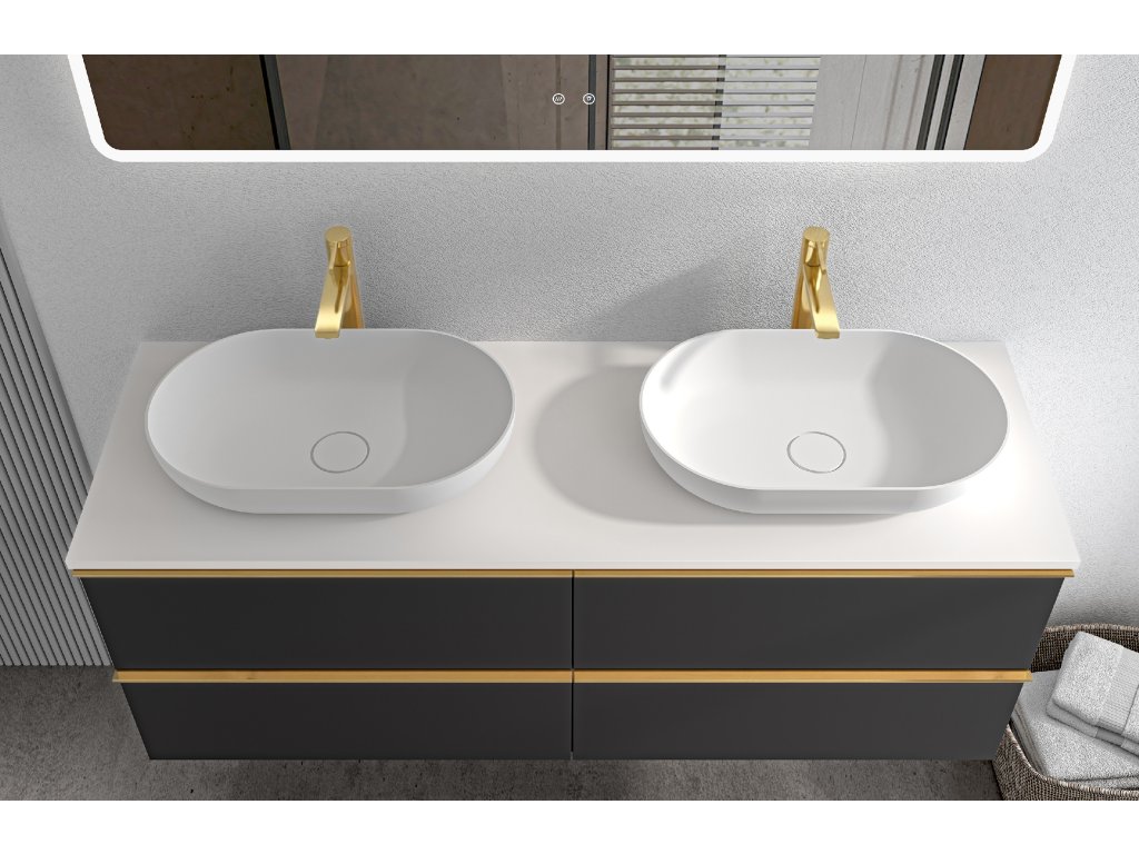 CERANO - Velora fürdőszobai mosdószekrény Elanys öntött márvány fogantyúval/tetővel - 12 mm - matt fekete, arany fogantyú - 119x53x45,2 cm