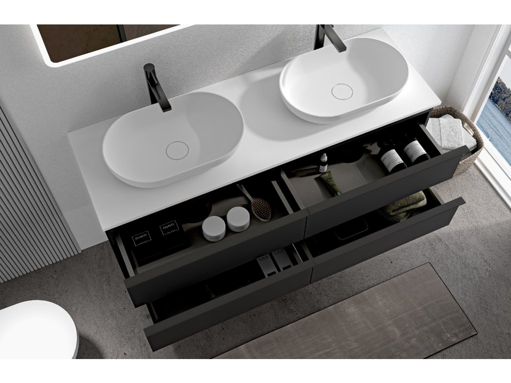 CERANO - Velora fürdőszobai mosdószekrény Elanys öntött márvány fogantyúval/tetővel - 12 mm - matt fekete, fekete fogantyú - 119x53x45,2 cm