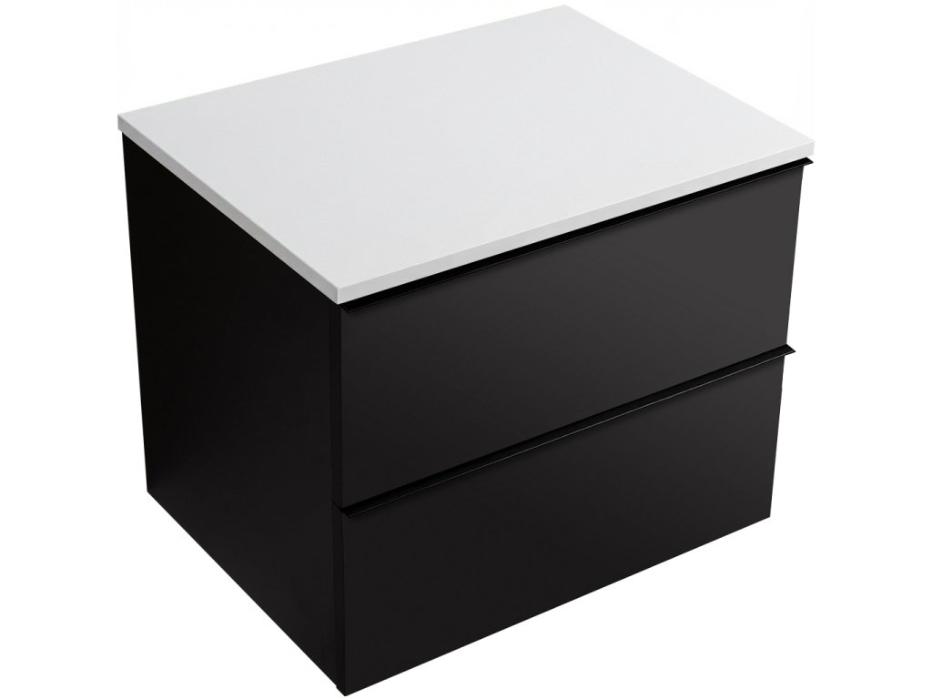 CERANO - Velora fürdőszobai mosdószekrény Elanys öntött márvány fogantyúval/tetővel - 12 mm - matt fekete, fekete fogantyú - 59x53x46 cm
