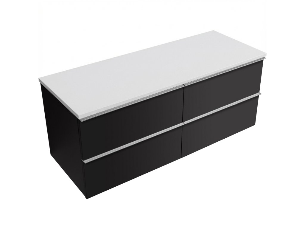 CERANO - Velora fürdőszobai mosdószekrény Elanys öntött márvány fogantyúval/tetővel - 12 mm - matt fekete, króm fogantyú - 119x53x45,2 cm