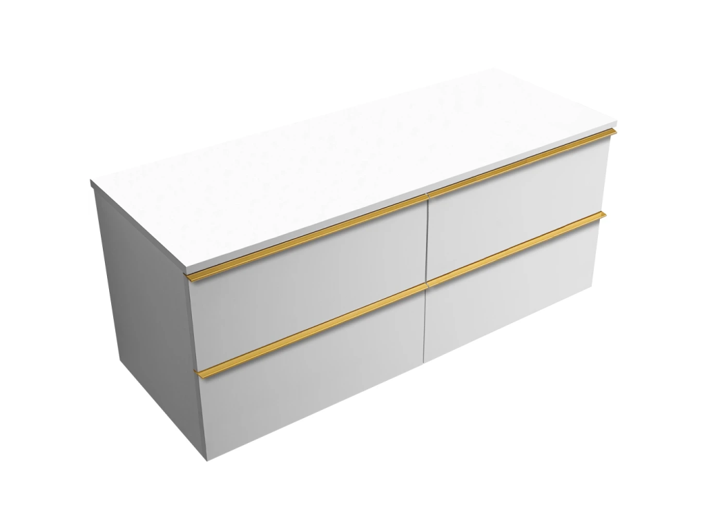 CERANO - Velora fürdőszobaszekrény - matt fehér, arany fogantyú + Elanys lit. márvány munkalap - 12 mm - matt fehér - 160x54.2x46.5 cm