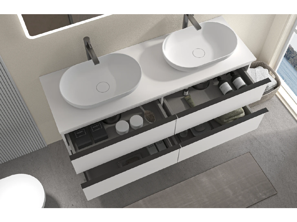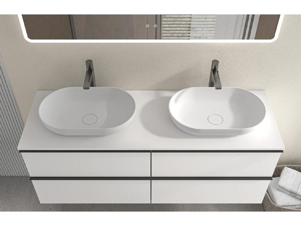 CERANO - Velora fürdőszobaszekrény - matt fehér, fekete fogantyú + Elanys lit. márvány munkalap - 12 mm - matt fehér - 140x54.2x46.5 cm