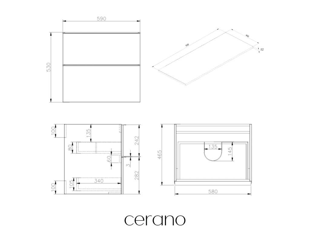 CERANO - Velora fürdőszobaszekrény - matt fehér, fekete fogantyú + Elanys lit. márvány munkalap - 12 mm - matt fehér - 60x54,2x46,5 cm