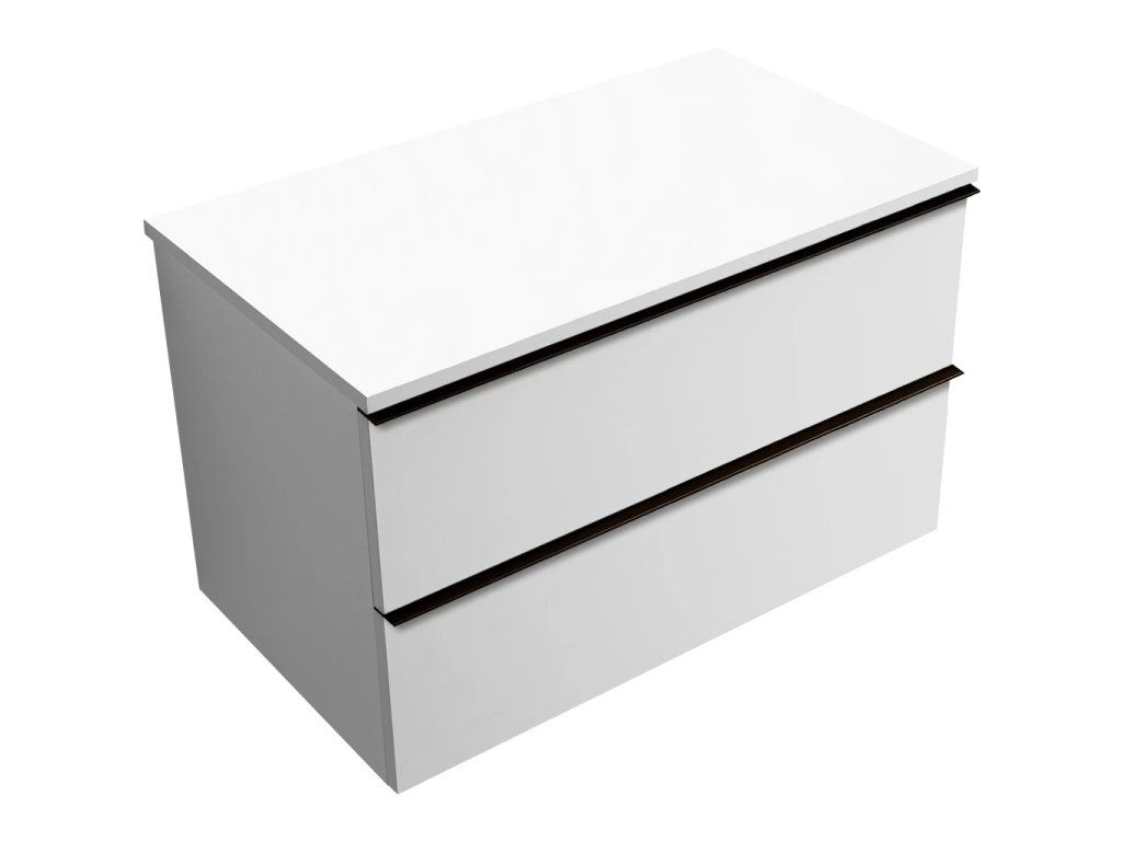CERANO - Velora fürdőszobaszekrény - matt fehér, fekete fogantyú + Navira Slim mosdólap - 18 mm - 100x54,8x46,5 cm