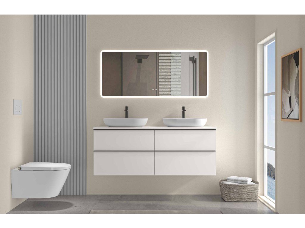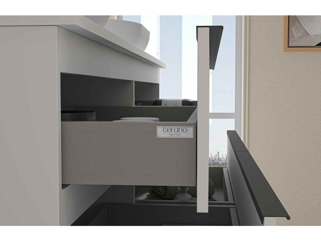 CERANO - Velora fürdőszobaszekrény - matt fehér, fekete fogantyú + Navira Slim mosdólap - 18 mm - 140x54,8x46,5 cm