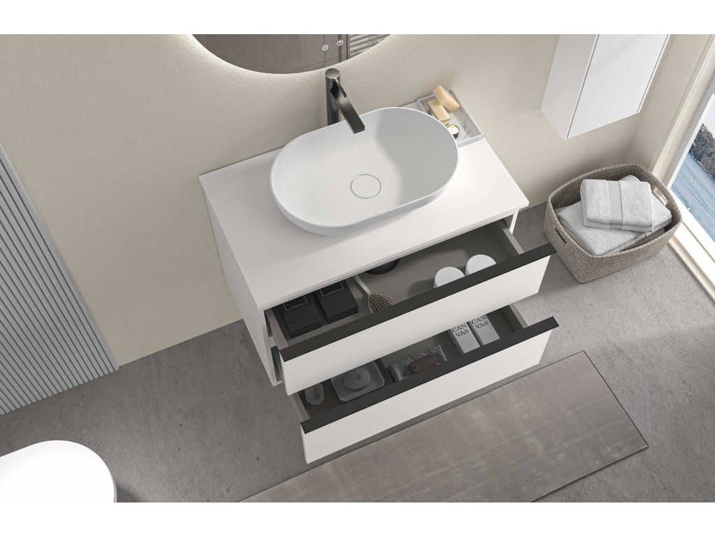 CERANO - Velora fürdőszobaszekrény - matt fehér, fekete fogantyú + Navira Slim mosdólap - 18 mm - 80x54,8x46,5 cm