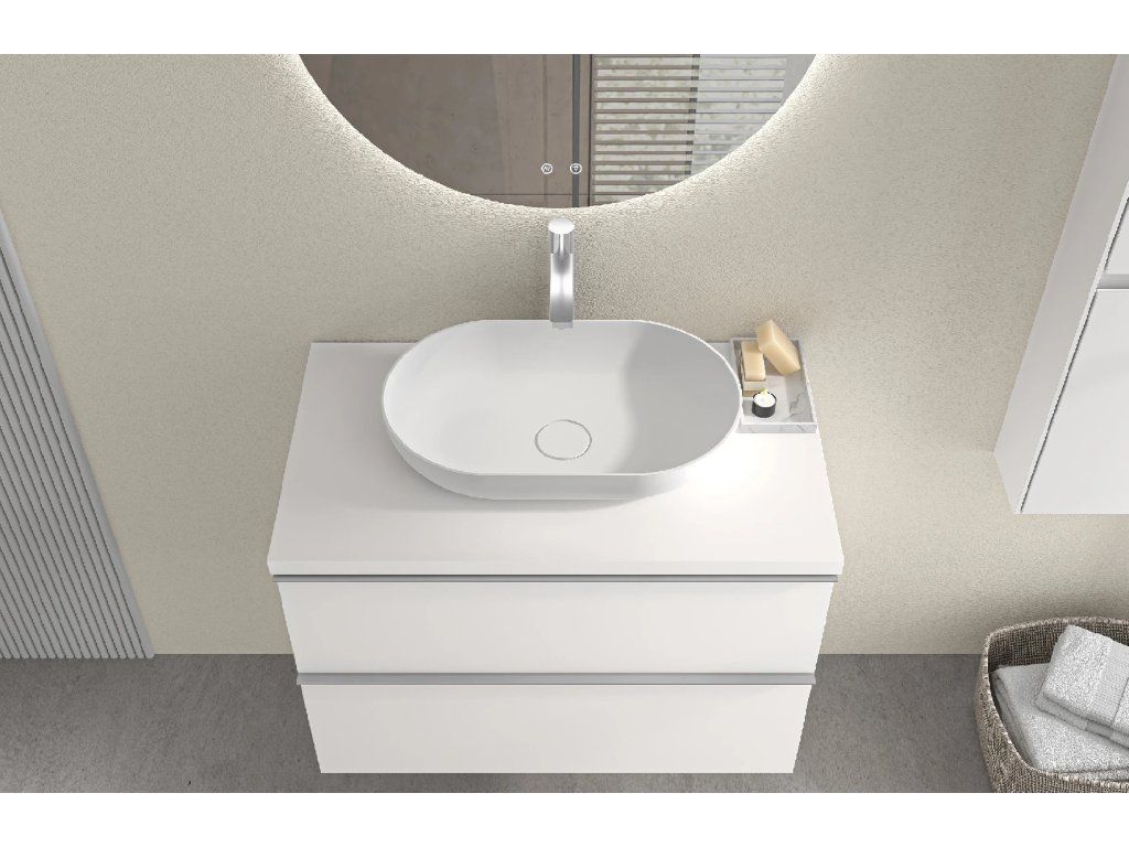 A szekrény egy kompatibilis fürdőszobabútor-család része, könnyen kombinálható más elemekkel, bővíthető a tárolóhely és megőrizhető a fürdőszoba egységes stílusa.