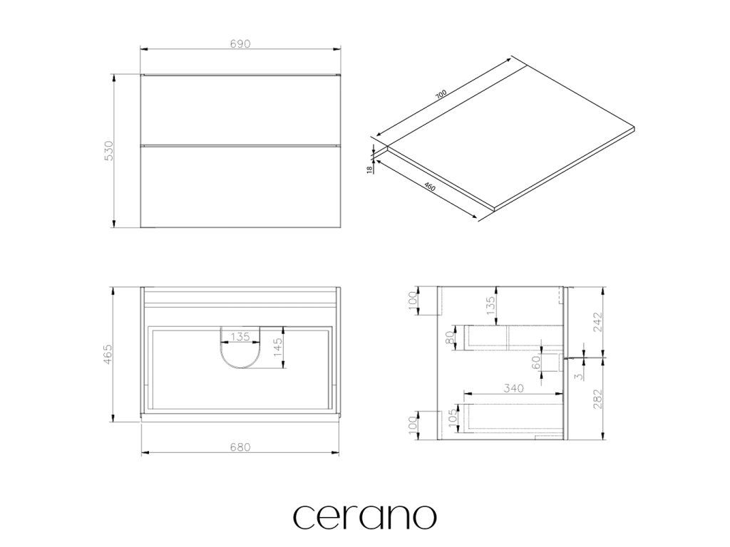 CERANO - Velora fürdőszobaszekrény - matt fehér, króm fogantyú + Navira Slim mosdólap - 18 mm - 70x54,8x46,5 cm