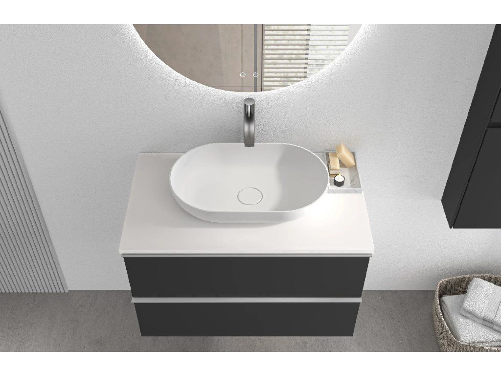 A szekrény egy kompatibilis fürdőszobabútor-család része, könnyen kombinálható más elemekkel, bővíthető a tárolóhely és megőrizhető a fürdőszoba egységes stílusa.
