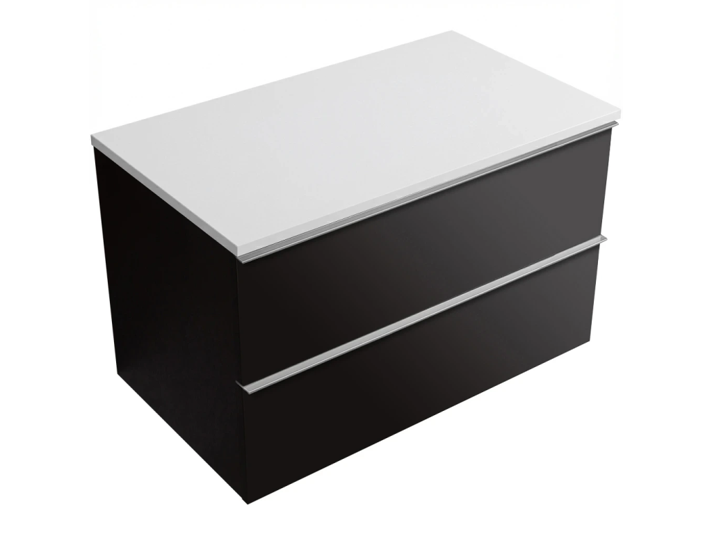 CERANO - Velora fürdőszobaszekrény - matt fekete, króm fogantyú + Elanys világító márvány munkalap - 12 mm - matt fehér - 100x54,2x46,5 cm