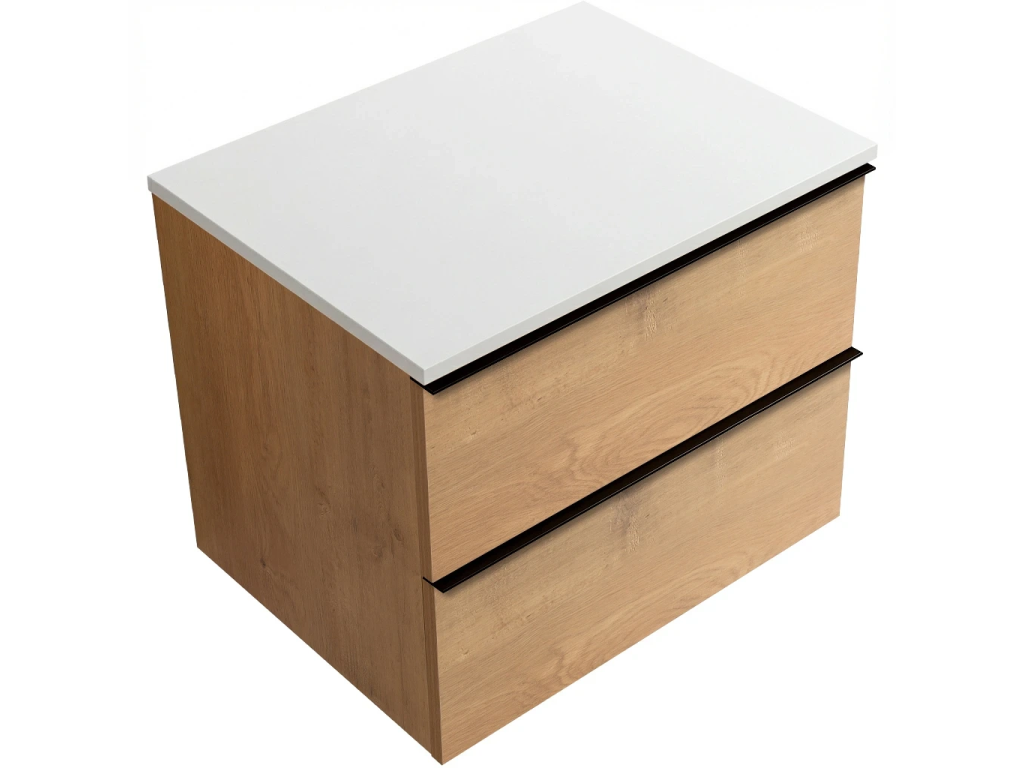 CERANO - Velora fürdőszobaszekrény - mézes tölgy, fekete fogantyú + Elanys lit. márványlap - 12 mm - matt fehér - 60x54.2x46.5 cm