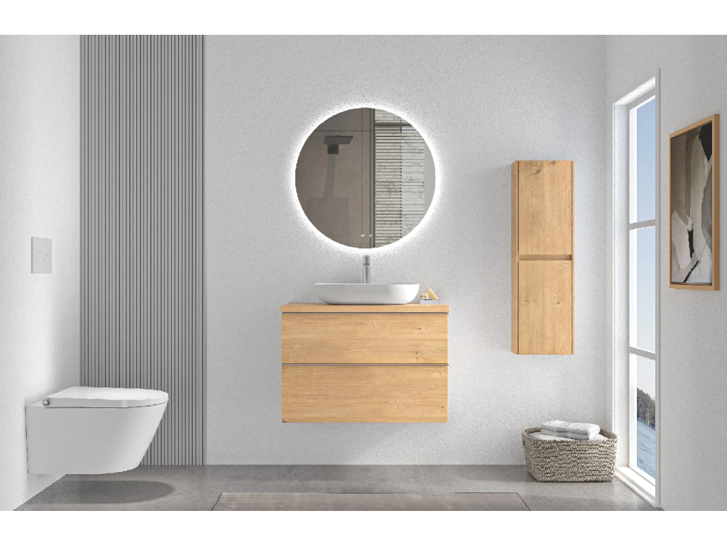 CERANO - Velora fürdőszobaszekrény - mézes tölgyfa, króm fogantyú + Navira Pro mosdólap - 36 mm - 80x56,6x46,5 cm