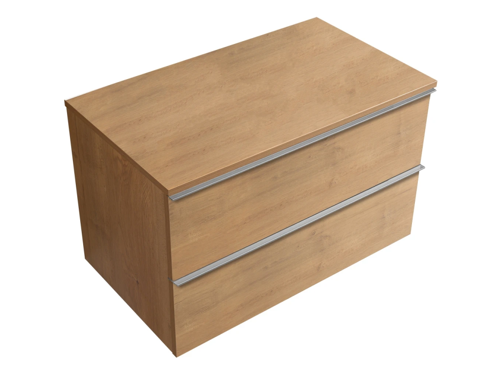 CERANO - Velora fürdőszobaszekrény - mézes tölgyfa, króm fogantyú + Navira Slim mosdólap - 18 mm - 80x54,8x46,5 cm