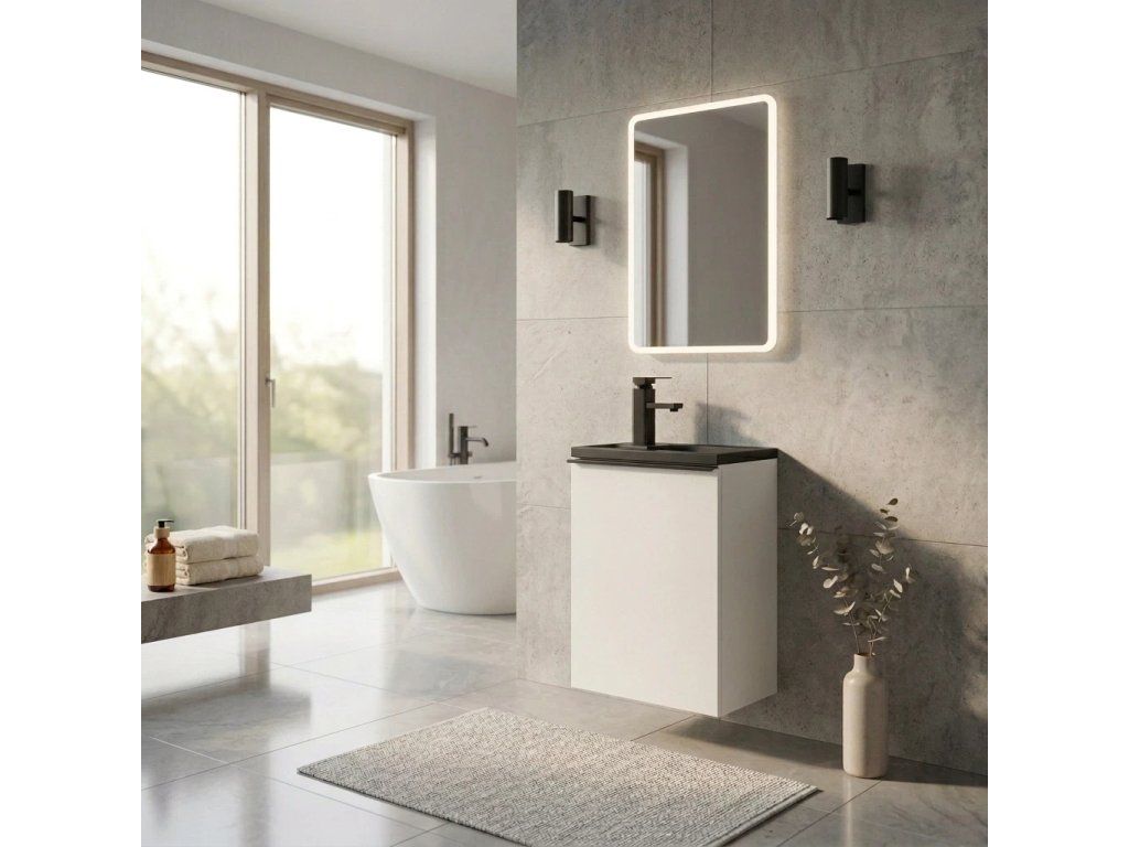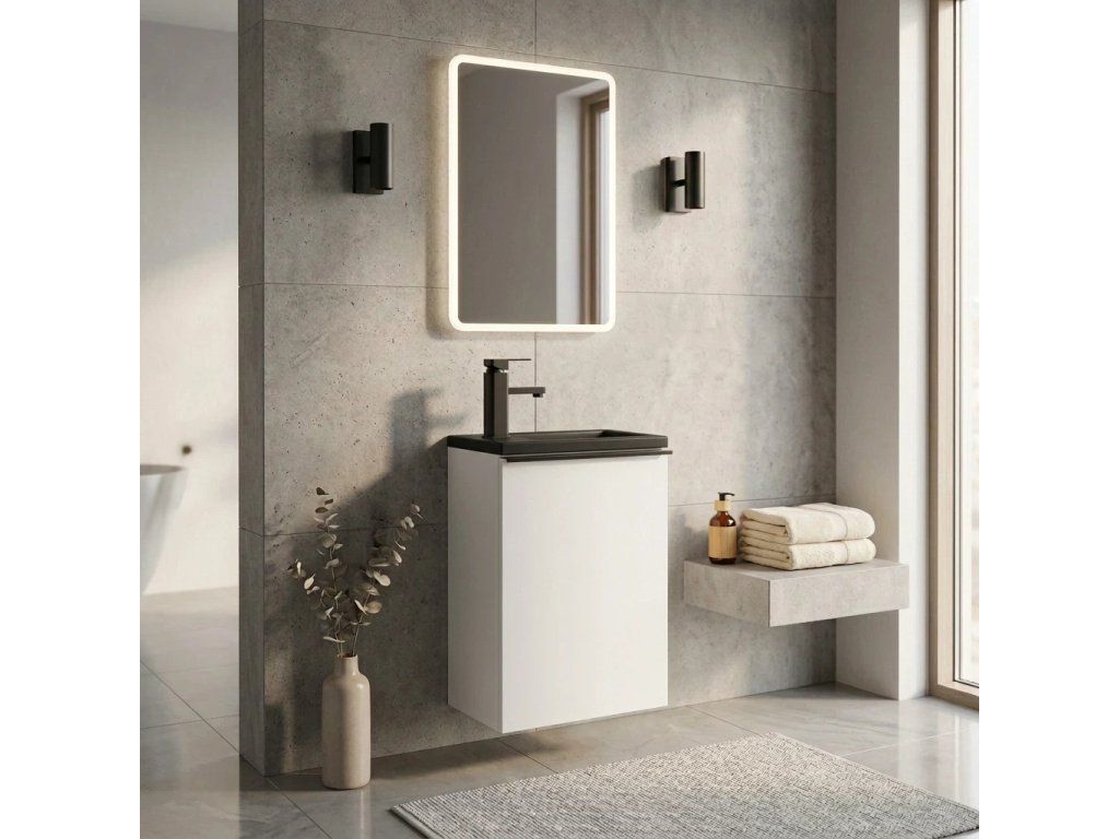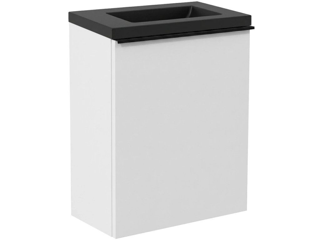 CERANO - Zola WC mosdószekrény - matt fehér + márvány mosdó - matt fekete - 40x23,5x61,5 cm