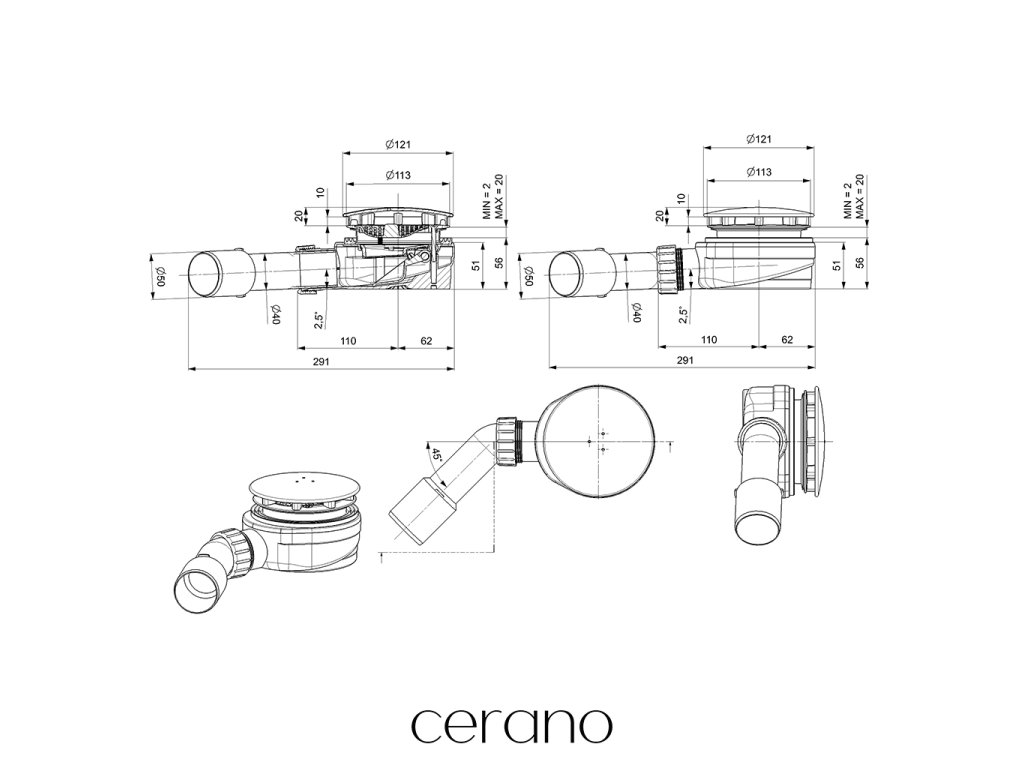 CERANO - Zuhanytálca szifon 90 mm - Ultra Slim - gravitációs szelep - DN40/50 - rozsdamentes acél fedél