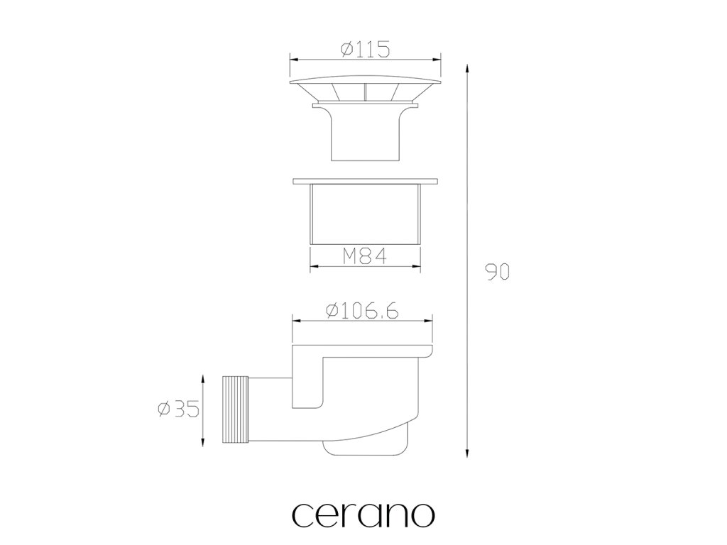 CERANO - Zuhanytálcához való szifon 90 mm - fekete - DN40 flexi