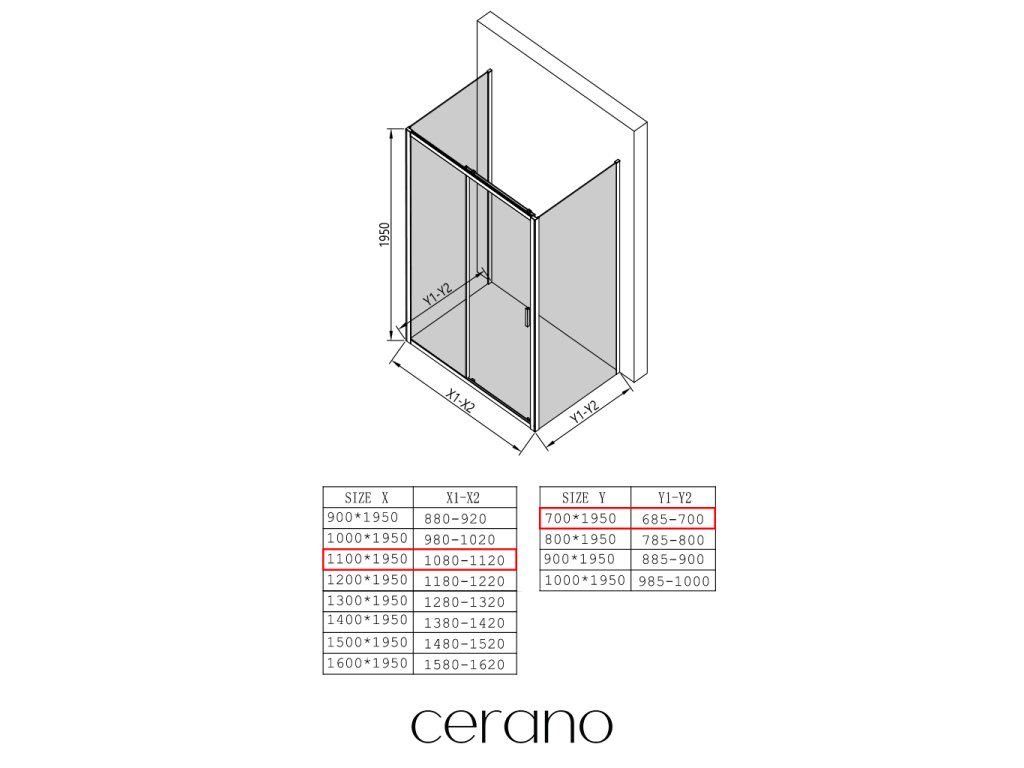 Ezen a sorozaton belül széles méretválasztékot kínálunk, hogy kielégítsük ügyfeleink különböző igényeit. Minden CERANO zuhanykabin, ajtó és paraván teljes mértékben kompatibilis az azonos méretű CERANO zuhanytálcákkal , biztosítva a zökkenőmentes telepítést és a tökéletes összehangolást. Ezenkívül a zuhanykabin rugalmasan telepíthető - akár a hozzá illő zuhanytálcára, akár közvetlenül a padlóra, az Ön preferenciáitól és a fürdőszobai lehetőségektől függően.