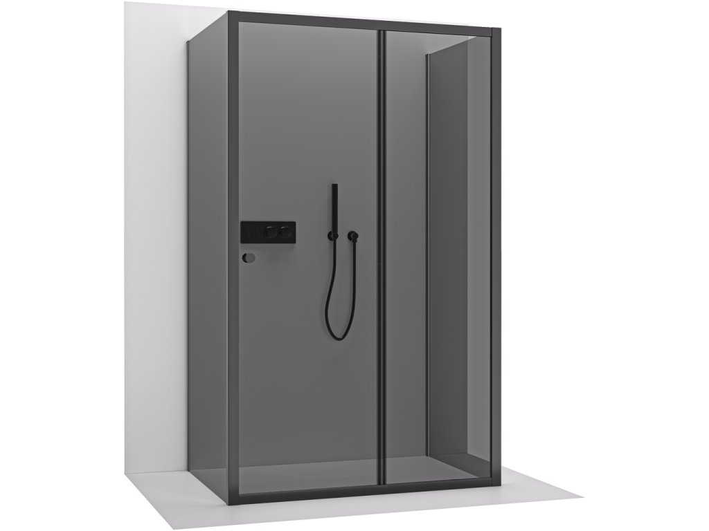 CERANO - Háromfalú zuhanykabin Varone POINT UL/P - 6 mm - matt fekete, grafitüveg - 120x70x195 cm - tolóajtó