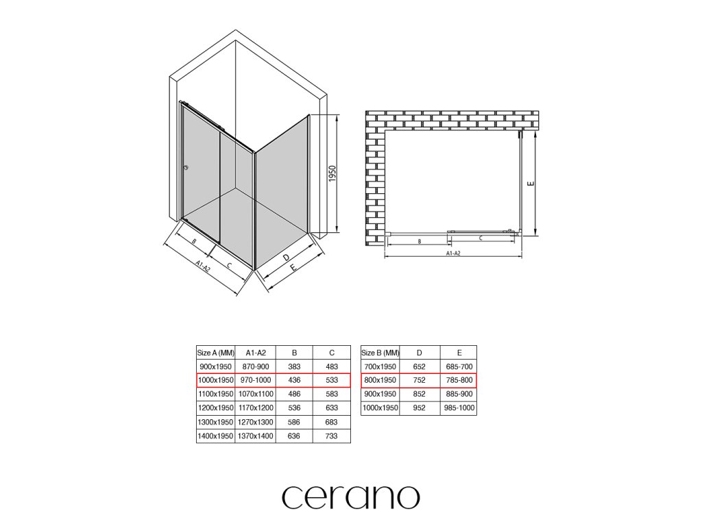 Ezen a sorozaton belül széles méretválasztékot kínálunk, hogy kielégítsük ügyfeleink különböző igényeit. Minden CERANO zuhanykabin, ajtó és paraván teljes mértékben kompatibilis az azonos méretű CERANO zuhanytálcákkal , biztosítva a zökkenőmentes telepítést és a tökéletes összehangolást. Ezenkívül a zuhanykabin rugalmasan telepíthető - akár a hozzá illő zuhanytálcára, akár közvetlenül a padlóra, az Ön preferenciáitól és a fürdőszobai lehetőségektől függően.