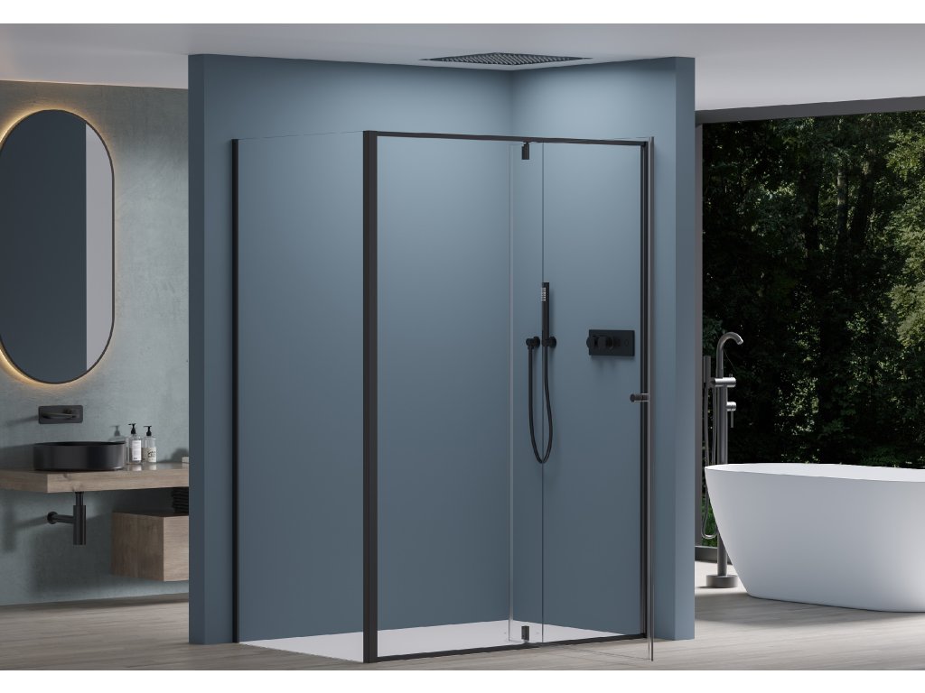 CERANO - Santini zuhanykabin B/J - 6 mm - matt fekete, átlátszó üveg - 110x80x195 cm - forgópánt