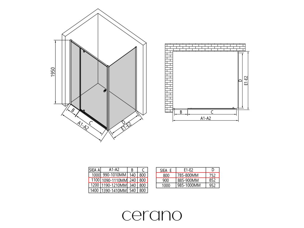 Ezen a sorozaton belül széles méretválasztékot kínálunk, hogy kielégítsük ügyfeleink különböző igényeit. Minden CERANO zuhanykabin, ajtó és paraván teljes mértékben kompatibilis az azonos méretű CERANO zuhanytálcákkal , biztosítva a zökkenőmentes telepítést és a tökéletes összehangolást. Ezenkívül a zuhanykabin rugalmasan telepíthető - akár a hozzá illő zuhanytálcára, akár közvetlenül a padlóra, az Ön preferenciáitól és a fürdőszobai lehetőségektől függően.
